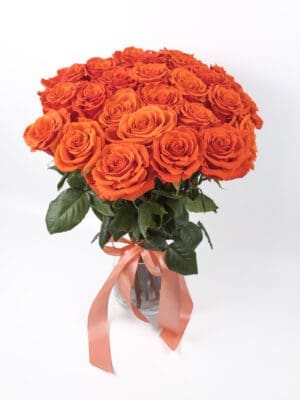 Bukiet z pomarańczowych róż to wyjątkowa kompozycja, która zachwyca intensywnym kolorem i świeżością. Wybierz spośród 15, 25, 51 lub 101 róż, aby stworzyć niezapomniany prezent na każdą okazję. Doskonały do dekoracji wnętrz lub jako wyraz uczuć, ten bukiet z pewnością przyciągnie uwagę. Idealny dla miłośników kwiatów i romantycznych gestów.