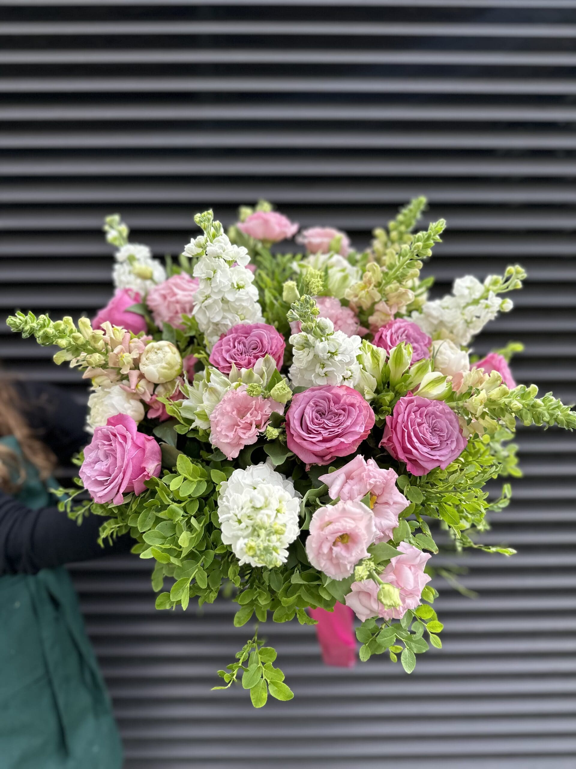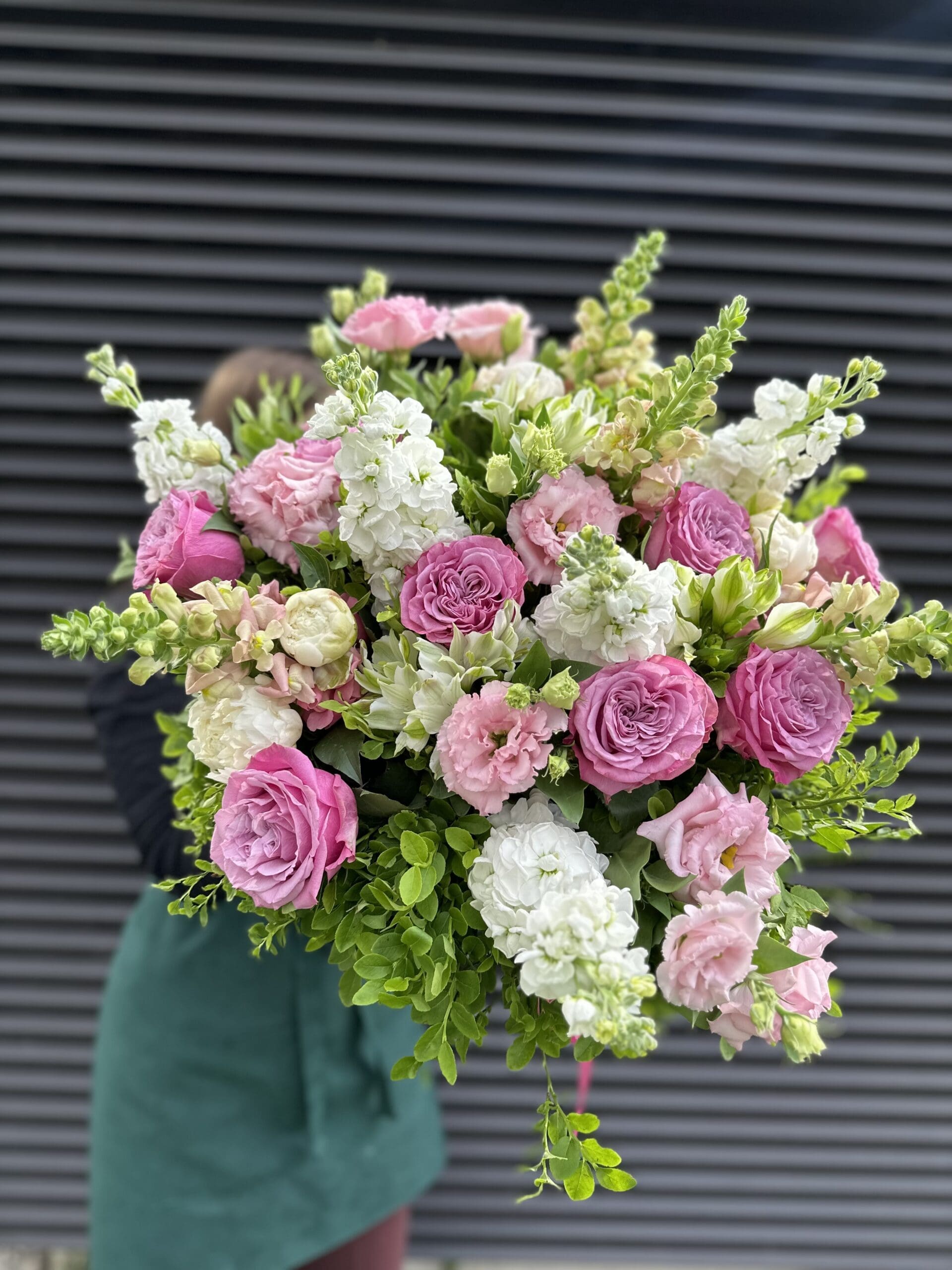 W skład bukietu pastelowego wchodzą starannie dobrane kwiaty: róże, eustomy, lwie paszcze, alstromerie oraz pachnąca lewkonia, która nadaje całości wyjątkowego charakteru. Bukiet wykonywany jest ręcznie z najświeższych kwiatów sezonowych, dzięki czemu długo cieszy oko i zapach. To doskonały wybór na urodziny, rocznicę, podziękowania, gratulacje, a także jako delikatny gest przeprosin lub prezent bez okazji.